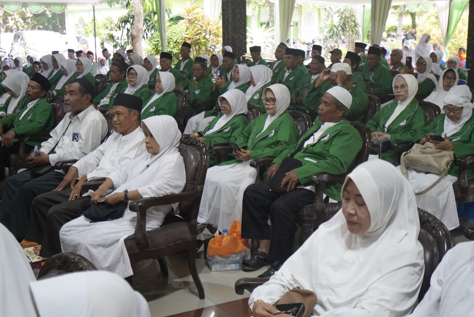 “Senang rasanya bisa berdiri di depan 785 jamaah calon haji, para calon tamu Gusti Allah SWT, jenegan semuanya adalah orang-orang terpilih tahun ini. Tidak semuanya yang punya uang bisa berangkat tahun ini. Kadang-kadang yang belum punya rezeki malah diundang terlebih dahulu. Sehingga jenengan semuanya harus bersyukur,” pesannya.