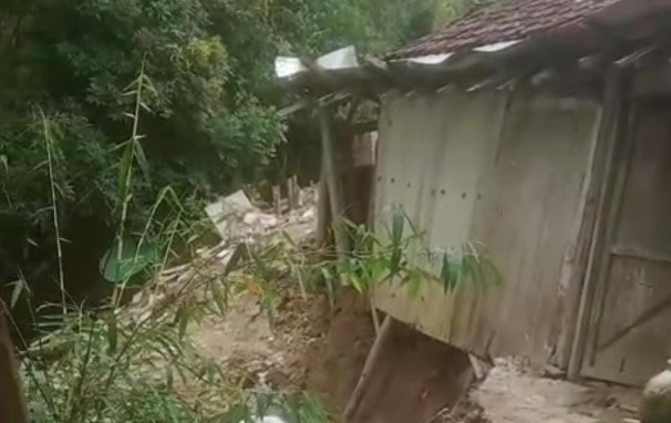 Pada Jumat dini hari (13/2/2026) sekitar pukul 02.00 WIB, tanah di bawah rumah mereka mendadak longsor akibat abrasi sungai, mengakibatkan satu kamar tidur amblas dan bagian dapur kini berada di ambang kehancuran.