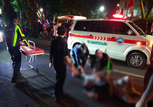 “Kelihatannya patah tulang. Dan saya tidak berani ngangkat, karena bisa fatal dengan kondisi seperti ini. Seharusnya yang mengangkat adalah petugas medis dan ditandu, serta harus di naikkan ke ambulance. Ini masih menunggu mobil ambulance-nya,” ucap salah satu petugas Satlantas yang menangani.