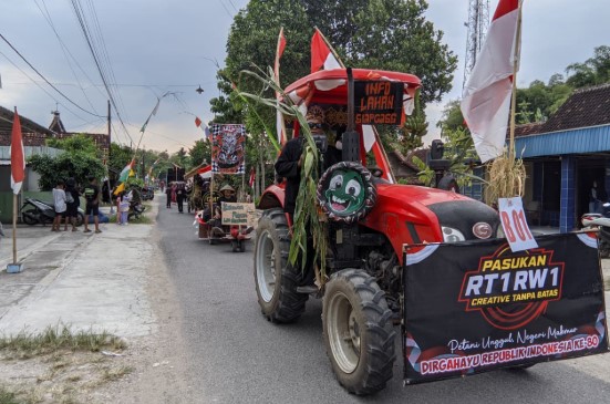 BLORA, Blok7.id – Angkat tema pertanian dalam perayaan karnaval HUT RI ke-80, RT 1 RW 1, Desa Gedongsari jadi sorotan, dikarenakan unik dan kreatif.