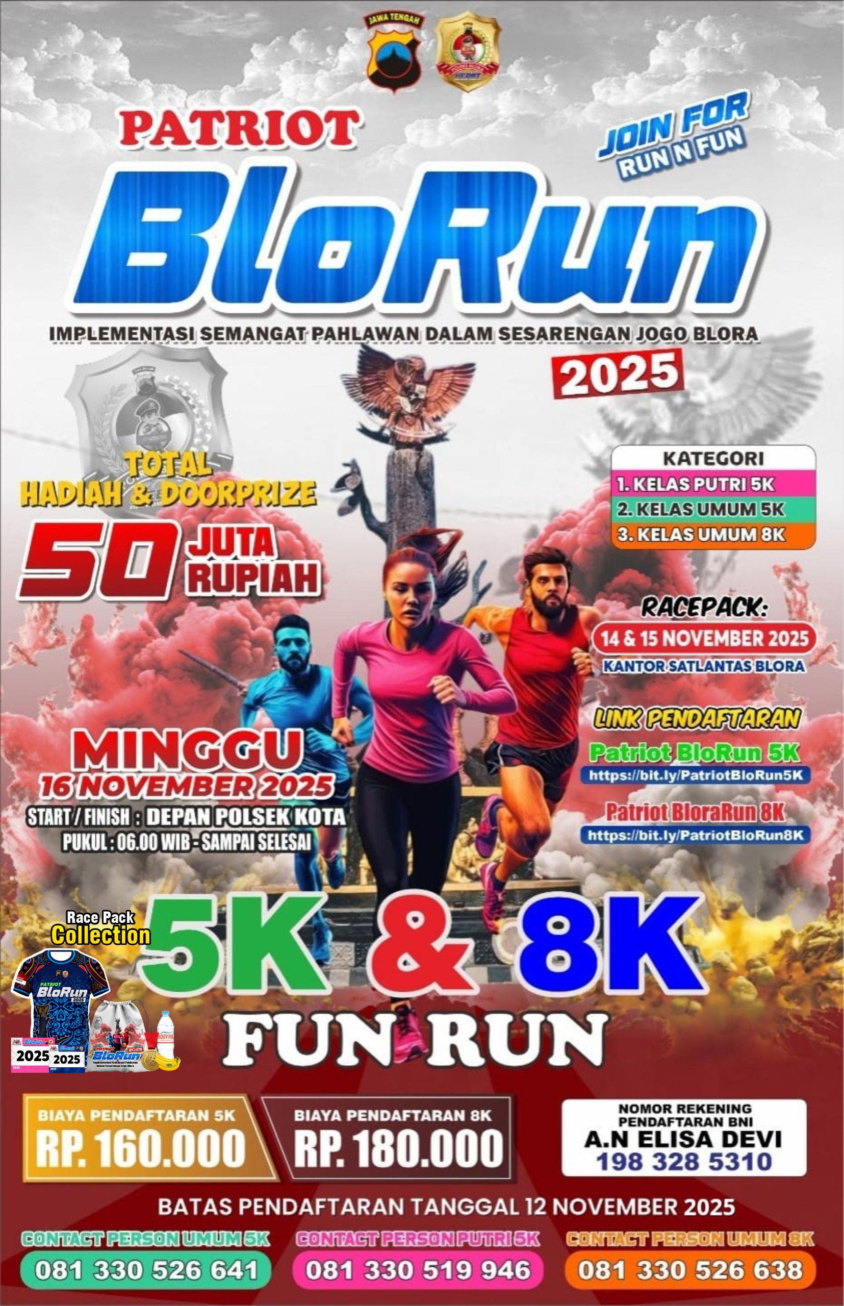 - Pengambilan Racepack: 14 dan 15 November 2025 di Kantor Satlantas Blora