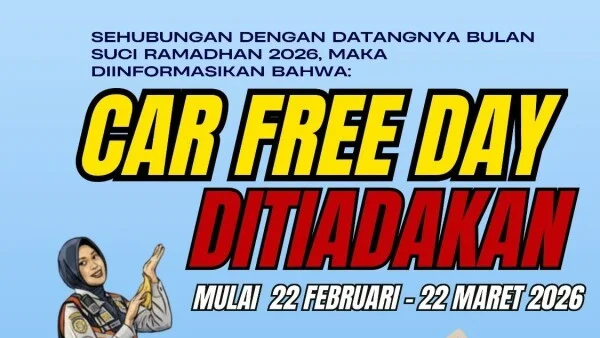 Peniadaan CFD berlaku mulai 22 Februari hingga 22 Maret 2026. Setelah itu, kegiatan CFD dijadwalkan kembali berlangsung pada Minggu, 29 Maret 2026.