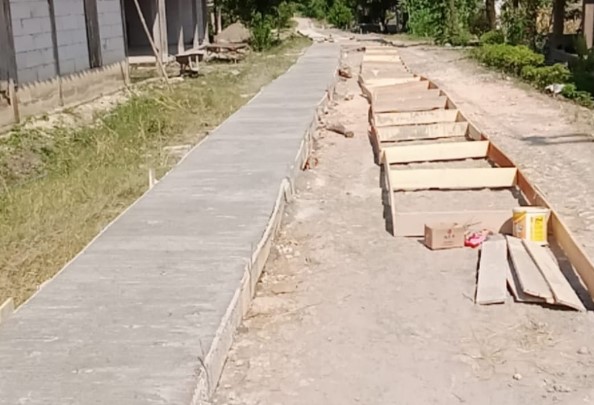 “Iya benar dibangun sendiri dengan rabat beton kanan kiri, dan di tengahnya diisi grosok termasuk berem kanan kiri,” jelasnya.