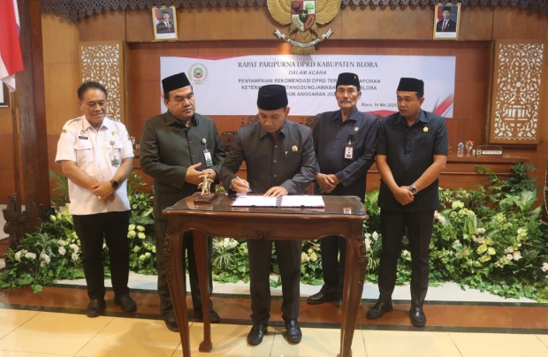BLORA, Blok7.id – Paripurna penyampaian rekomendasi Dewan Perwakilan Rakyat Daerah (DPRD) Kabupaten Blora terhadap Laporan Keterangan Pertanggungjawaban (LKPJ) Bupati Blora, Tahun Anggaran (TA) 2024, Rabu (14/5/2025).