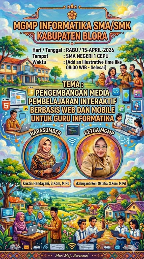 Sebelumnya, MGMP Informatika Kabupaten Blora telah menggelar kegiatan strategis di SMAN 1 Cepu dengan tema pengembangan media pembelajaran interaktif berbasis web dan mobile. Kegiatan tersebut menjadi bukti nyata bahwa transformasi digital tidak hanya menjadi wacana, tetapi mulai diterapkan secara konkret.