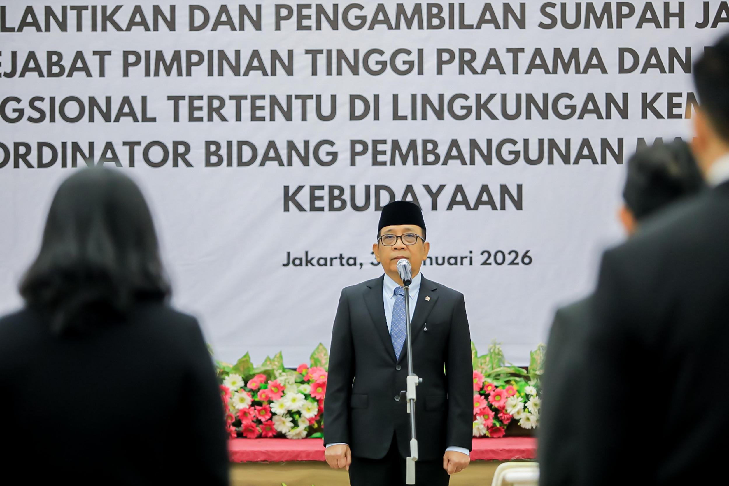Jakarta. Blok7.id – Menteri Koordinator Bidang Pembangunan Manusia dan Kebudayaan (Menko PMK) Pratikno melantik Pejabat Pimpinan Tinggi Pratama dan Pejabat Fungsional Tertentu di lingkungan Kemenko PMK. Pelantikan berlangsung di Aula Heritage Kemenko PMK, Jumat (30/1/2026).