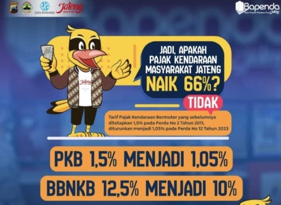 Di Jawa Tengah, tarif PKB justru diturunkan dari 1,5 persen menjadi 1,05 persen melalui Peraturan Daerah Jawa Tengah Nomor 12 Tahun 2023. Tarif BBNKB juga turun dari 12,5 persen menjadi 10 persen.