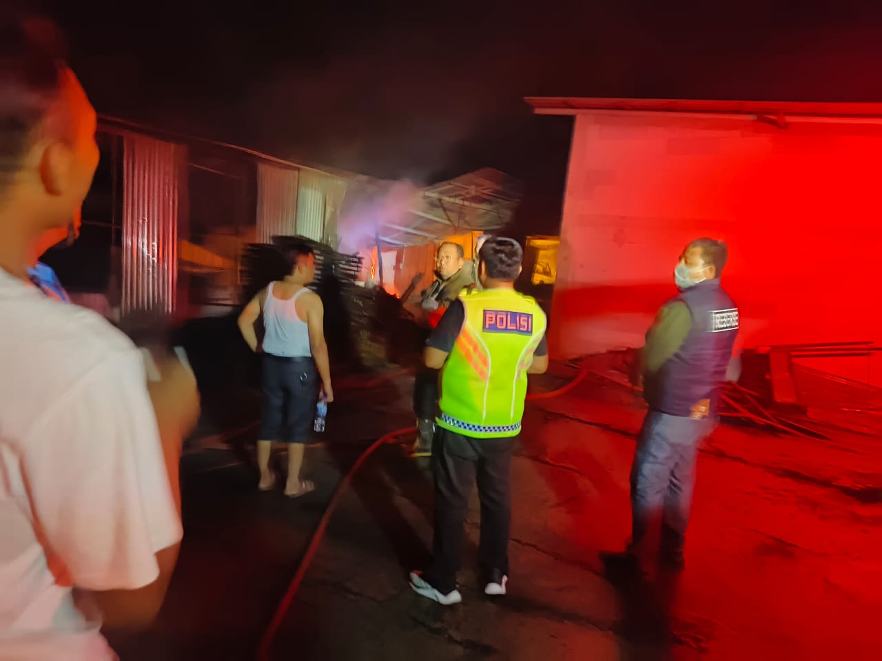Penjaga pabrik sempat berupaya memadamkan api menggunakan peralatan seadanya bersama pegawai lain, namun api justru semakin membesar hingga akhirnya dilaporkan ke pihak kepolisian dan pemadam kebakaran.