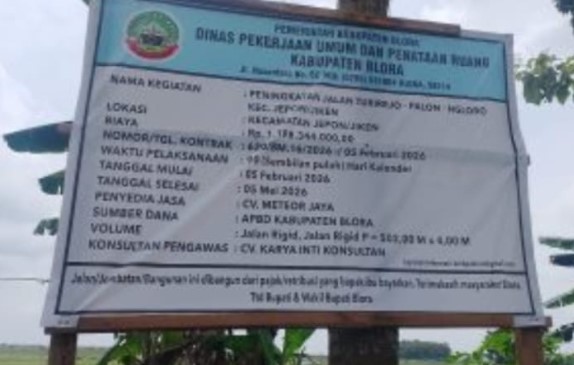 Thank you for reading this post, don't forget to subscribe!Proyek jalan sepanjang 500 meter dengan lebar 4 meter itu diketahui menelan anggaran sekitar Rp1,2 miliar dari APBD Blora dan dikerjakan oleh CV Meteor Jaya, Demak.