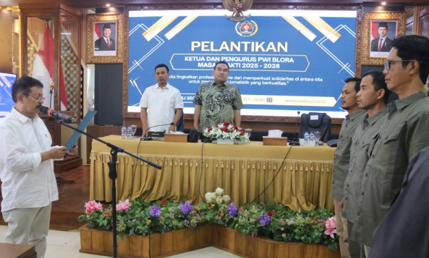 Senada, Bupati Blora Arief Rohman, menyampaikan ucapan selamat kepada pengurus Persatuan Wartawan Indonesia (PWI) Kabupaten Blora yang baru saja dikukuhkan dan dilantik.