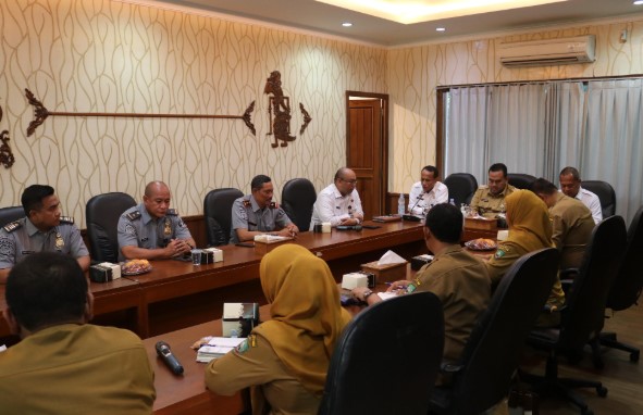 BLORA, Blok7.id – Kepala Rumah Tahanan Negara (Rutan) Kelas IIB Blora Sugito mendampingi Kepala Kantor Wilayah Direktorat Jenderal Pemasyarakatan (Ditjenpas) Jawa Tengah Mardi Santoso dalam kegiatan rapat audiensi bersama Bupati Blora dan jajaran, bertempat di Ruang Rapat Kantor Bupati setempat, Senin (2/6/2025).