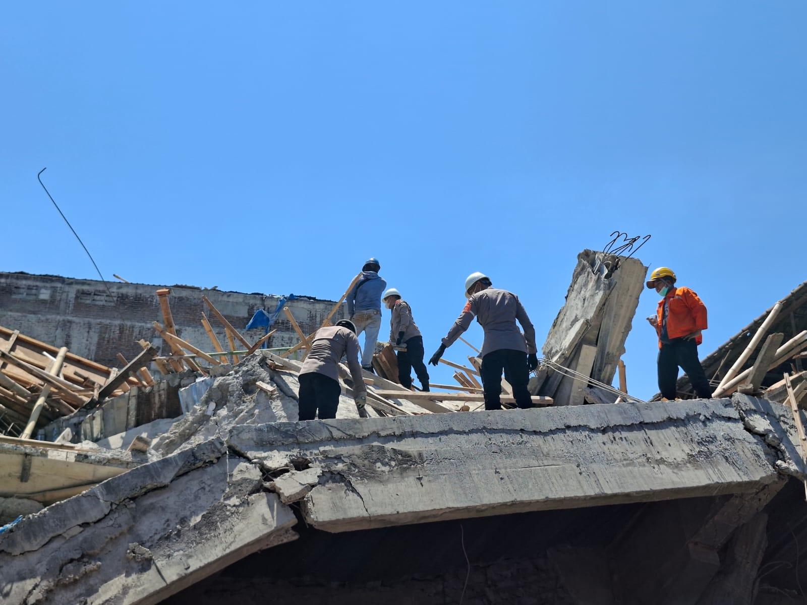 Sejak pagi, petugas menyisir area dengan peralatan manual seperti cangkul dan sekop. Bongkahan besar beton dan besi dipindahkan menggunakan alat berat. Hal ini dilakukan agar jalur evakuasi semakin terbuka sehingga pencarian korban bisa lebih cepat dilakukan.