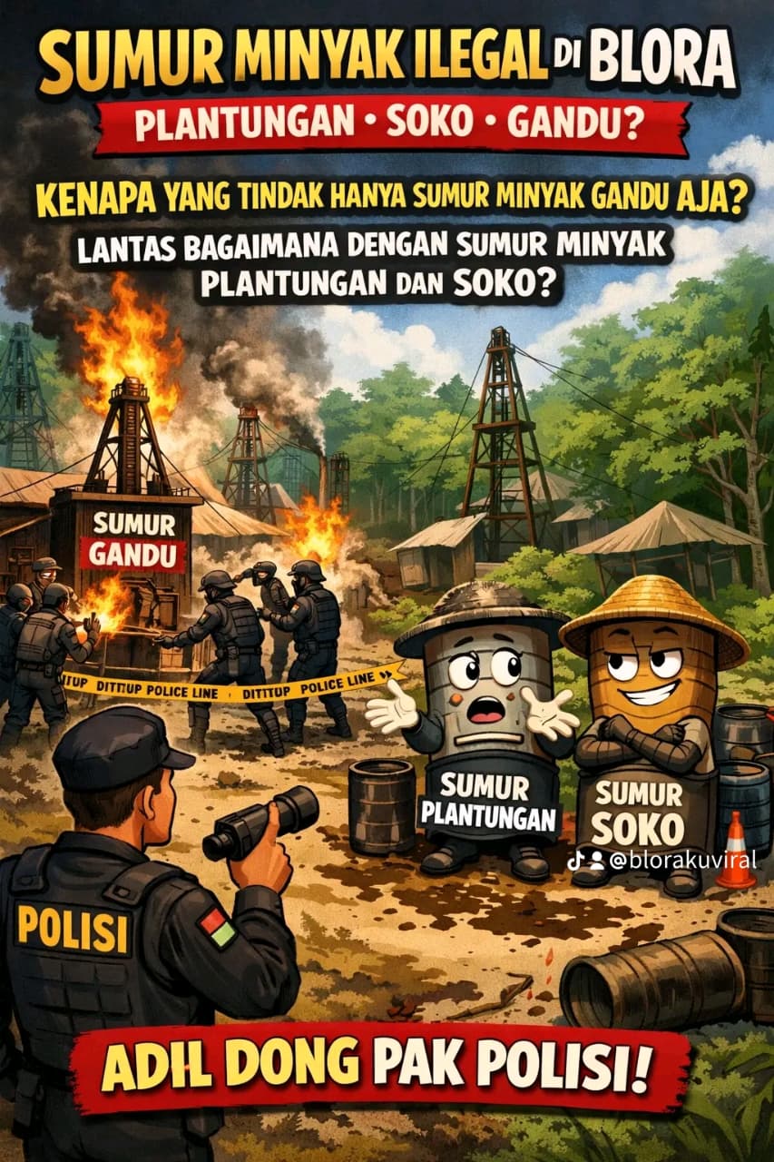 Thank you for reading this post, don't forget to subscribe!“Sumur Minyak Ilegal di Blora antara lain Plantungan-Soko-Gandu. Kenapa yang ditindak hanya sumur minyak Gandu saja? Lantas bagaimana dengan sumur minyak Plantungan dan Soko? Yang adil dong pak Polisi,” tulis pamflet itu, Kamis (9/4/2026).