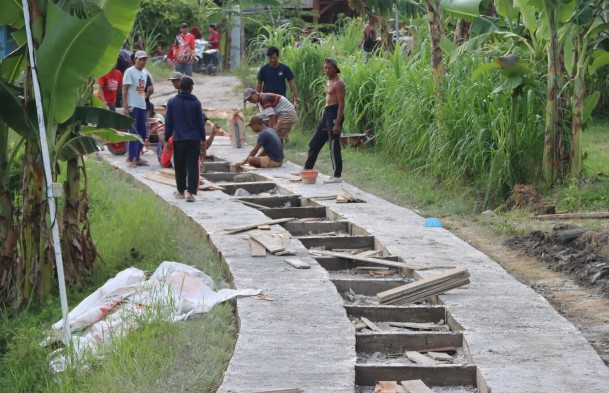 Pembangunan dilakukan secara swadaya penuh. Warga menyumbang semen, pasir, uang, tenaga, hingga konsumsi. Sistem kerja bergiliran diterapkan, bahkan hingga malam hari. Dalam waktu singkat, hampir satu kilometer jalan berhasil diperbaiki di tujuh titik berbeda.