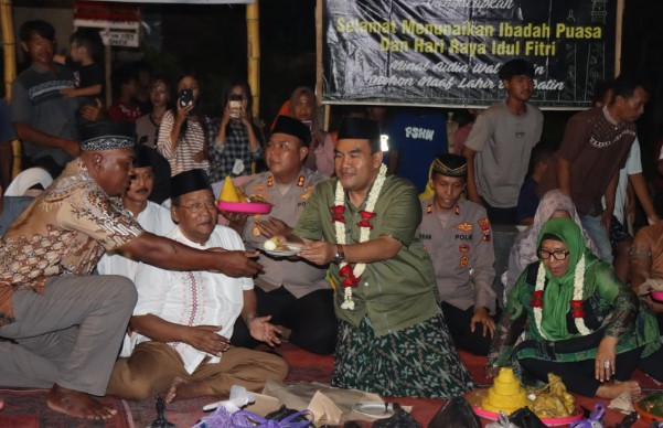 Suasana gembira mewarnai para warga yang gelar tumpengan sebelum Sholat Tarawih. Mereka mengeluk-elukan dan sempat mengalungkan bunga kepada Bupati.